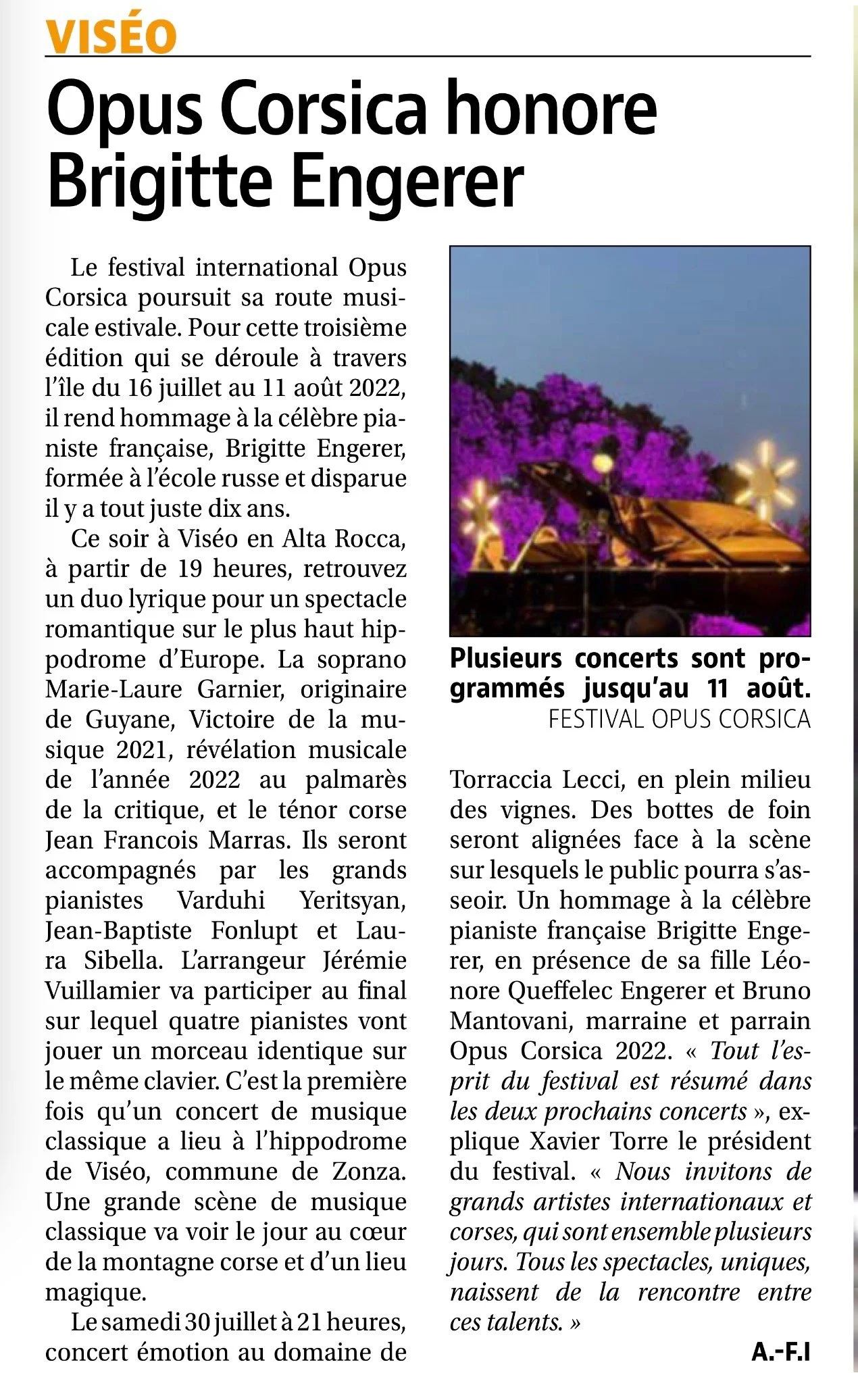 Corse Matin Opus Corsica honore Brigitte Engerer par Ange-François Istria